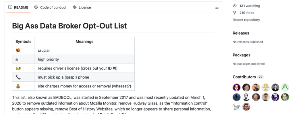 Note that paid services exist (Kanary, Optery, DeleteMe) that will take down information from data brokers on your behalf for a fee; we link to a free resource as a starting place.